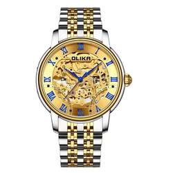 Мужские автоматические механические часы высокого класса, модные классические выдолбленные часы с водостойким ремешком из нержавеющей стали